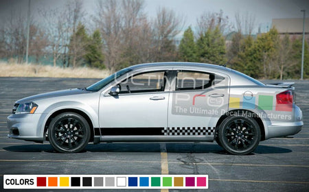 UltimatePro Designs has Vinyl Graphics, Stripe Kits and Decals for your Dodge Avenger Model! Professional Quality High Performance Vinyl Graphic Film! We feature an amazing variety of vehicle specific rally racing stripe kits, lower rocker panel stripes, factory style hood graphics, and side body stripe kits available for the wide range Dodge Avenger model vehicles listed.