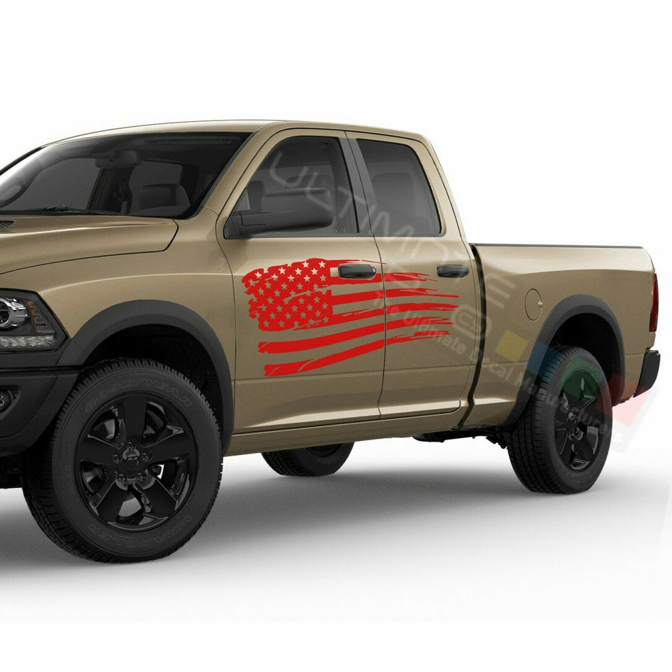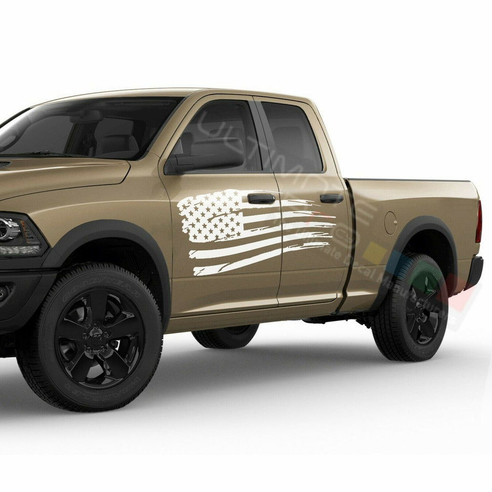 American Flag Side Doors Wrap Decal Sticker for Dodge Ram Quad Cab 1500