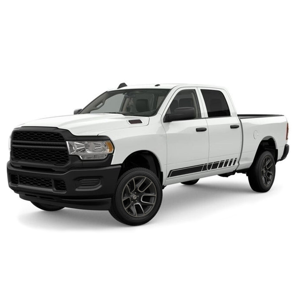 Fits Trim Levels: This graphics kit will fit trim levels Tradesman, Big Horn, Lone Star, Laramie, Laramie Longhorn, Limited, Rebel of the Dodge RAM 2500. Our decals are die cut so the color of your Truck will be shown in the background.
