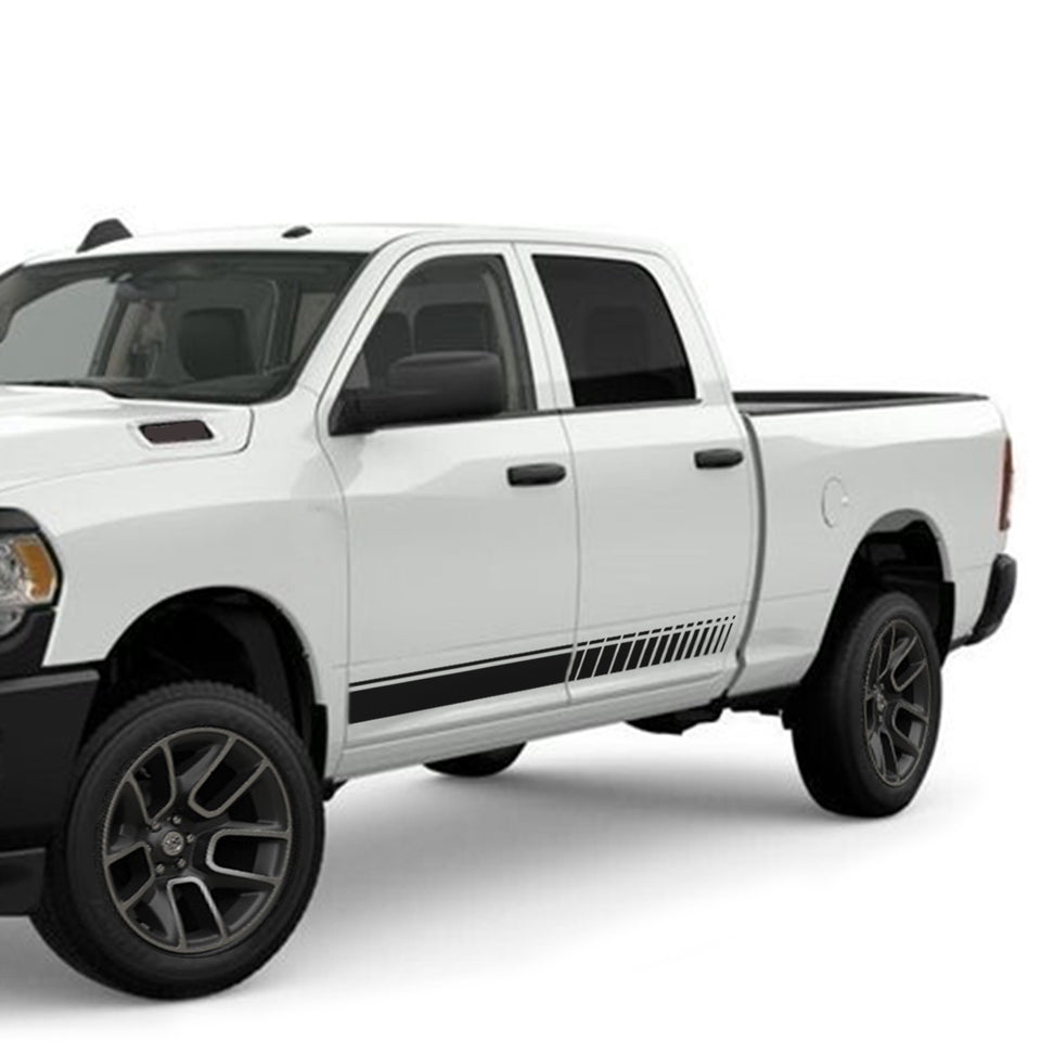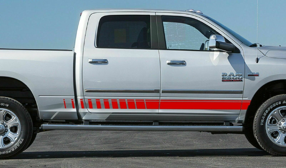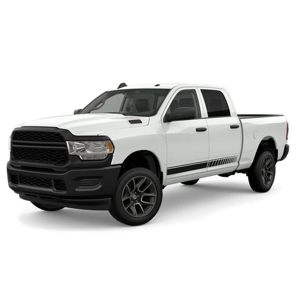 Fits Trim Levels: This graphics kit will fit trim levels Tradesman, Big Horn, Lone Star, Laramie, Laramie Longhorn, Limited, Rebel of the Dodge RAM 1500 2500 . Our decals are die cut so the color of your Truck will be shown in the background.
