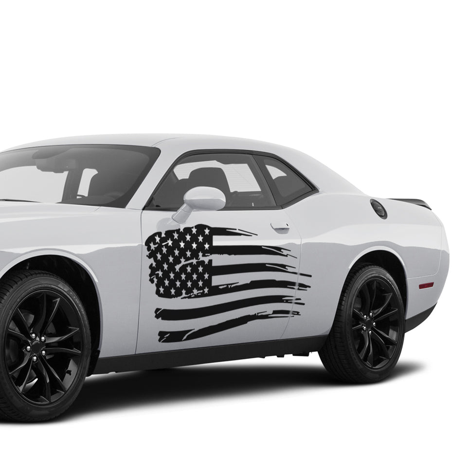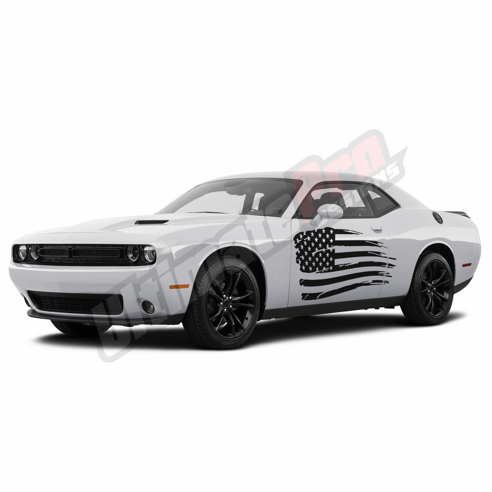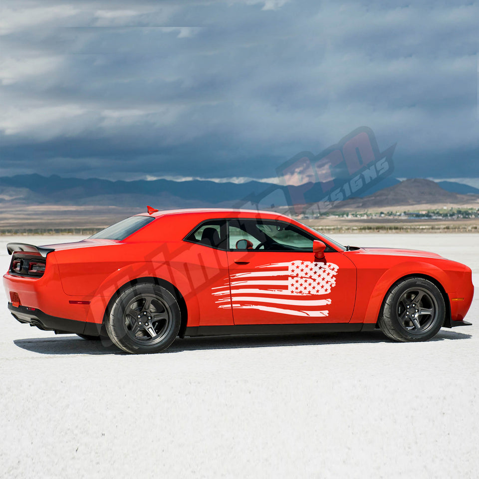 Sticker For Dodge Challenger Sport Side US Flag Design Vinyl Graphic Decal
