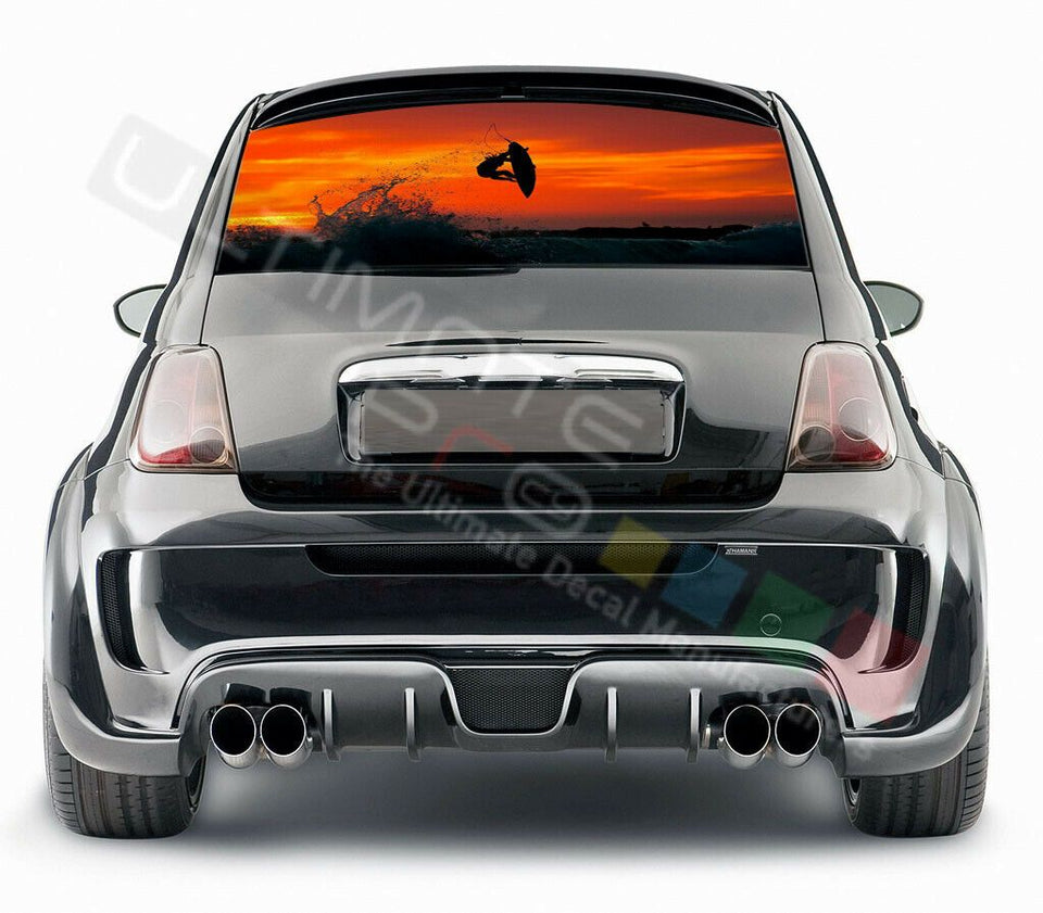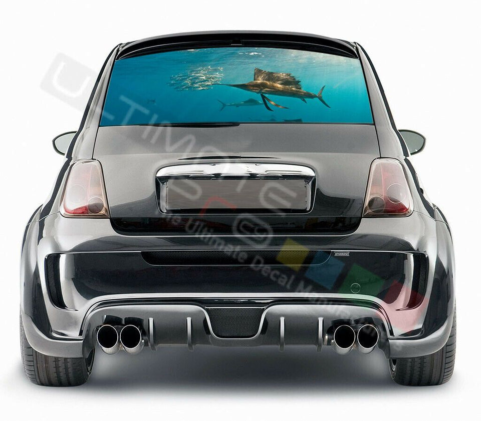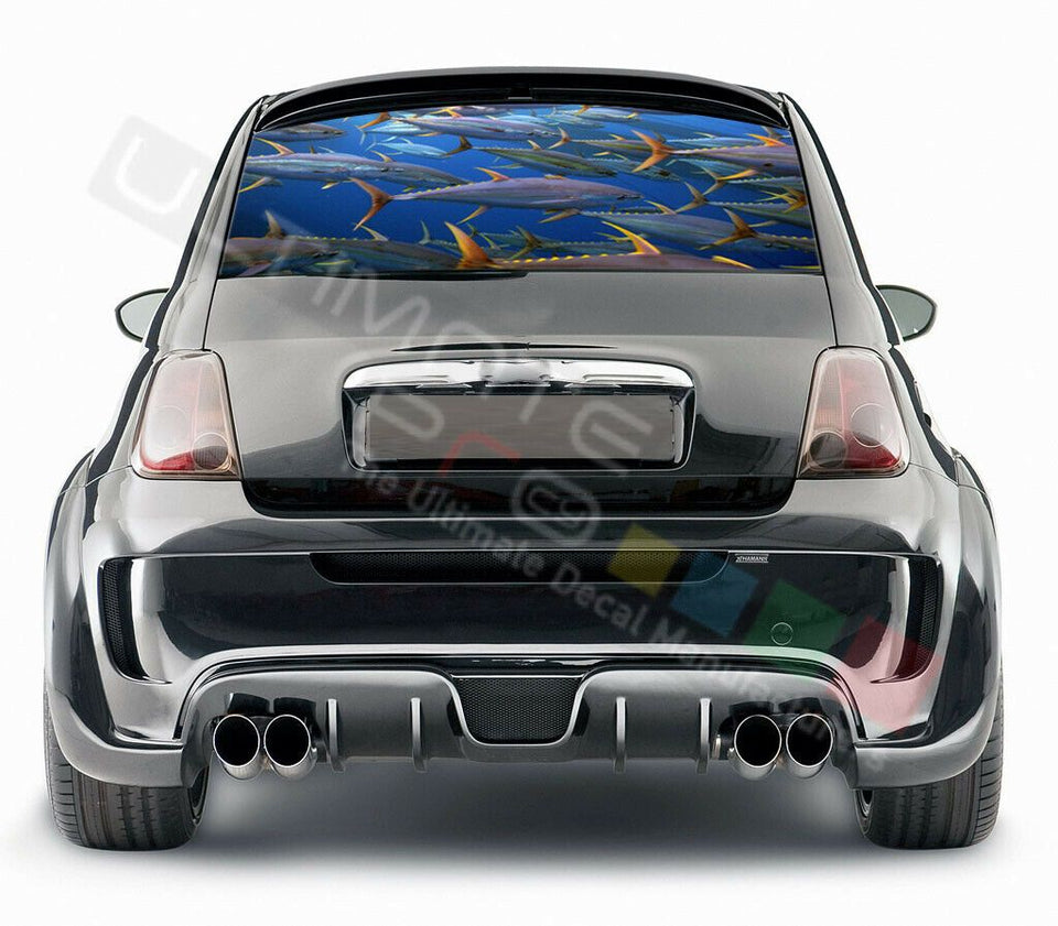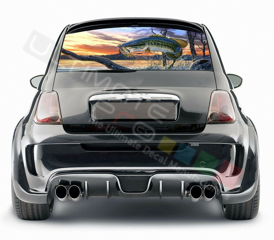 Fishing Design Decals Rear Window See Thru Stickers Perforated for FIAT 500 2020