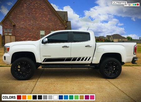 UltimatePro Designs has Vinyl Graphics, Stripe Kits and Decals for your GMC Canyon Model! Professional Quality High Performance Vinyl Graphic Film! We feature an amazing variety of vehicle specific rally racing stripe kits, lower rocker panel stripes, factory style hood graphics, and side body stripe kits available for the wide range GMC Canyon model vehicles listed.