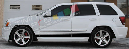 UltimatePro Designs has Vinyl Graphics, Stripe Kits and Decals for your Jeep Cherokee Model! Professional Quality High Performance Vinyl Graphic Film! We feature an amazing variety of vehicle specific rally racing stripe kits, lower rocker panel stripes, factory style hood graphics, and side body stripe kits available for the wide range Jeep Cherokee model vehicles listed.