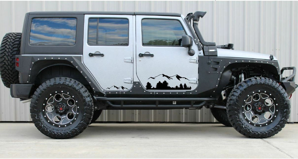 2 Decal sticker kit For Jeep Wrangler JK door mountain stripes bumper Armour Bar
