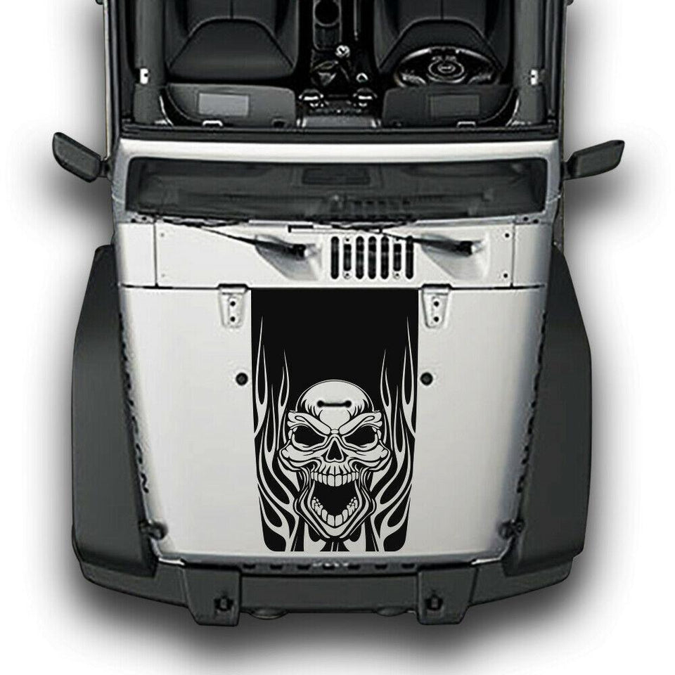 Skull flame Bonnet Sticker Decal Vinyl Hood Stripes for Jeep Wrangler 2011 - 2019 - 2020 - 2021 - 2023 - 2024 off road 4x4