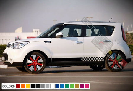 UltimatePro Designs has Vinyl Graphics, Stripe Kits and Decals for your Kia Soul Model! Professional Quality High Performance Vinyl Graphic Film! We feature an amazing variety of vehicle specific rally racing stripe kits, lower rocker panel stripes, factory style hood graphics, and side body stripe kits available for the wide range Kia Soul model vehicles listed.
