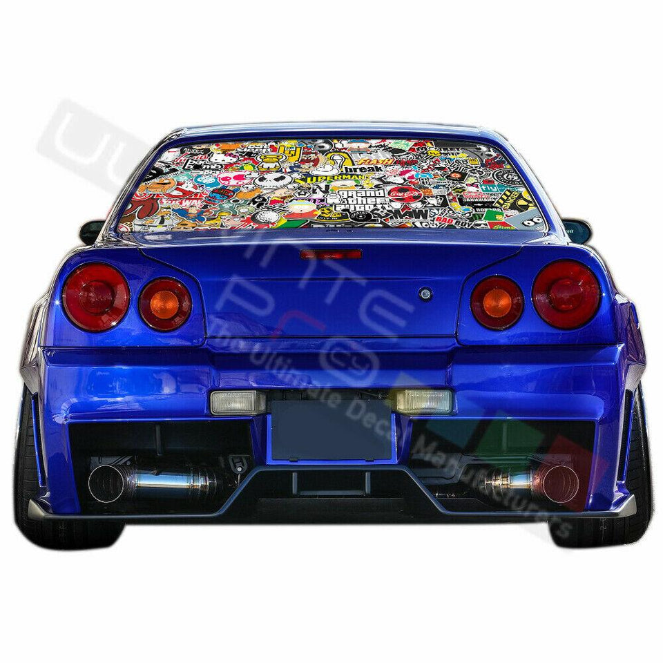 Sticker Bomb Skin Window See Thru Stickers Perforated for Nissan Skyline 2019
